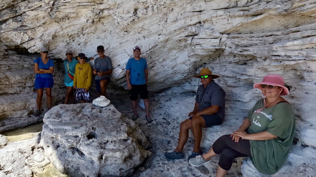 Dans ces conditions je reste au bateau tandis que le Capitaine part avec nos 2 guests rejoindre les 2 d’Ental et les 4 de Myriades à la conquête d’une grotte à ciel ouvert plus loin sur la plage , véritable fenêtre XXL sur la mer. J’ai raté cela. 9 frenchies en vadrouille aux Bahamas. Cela ne devait pas être triste.