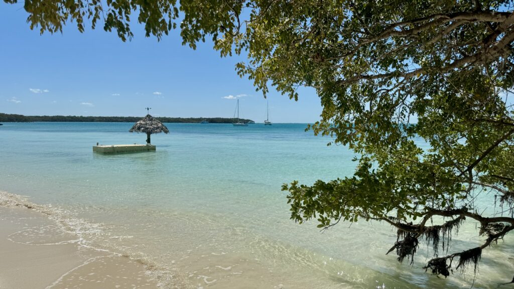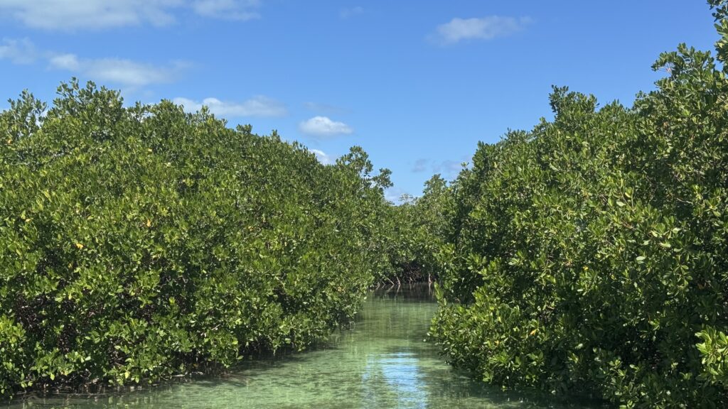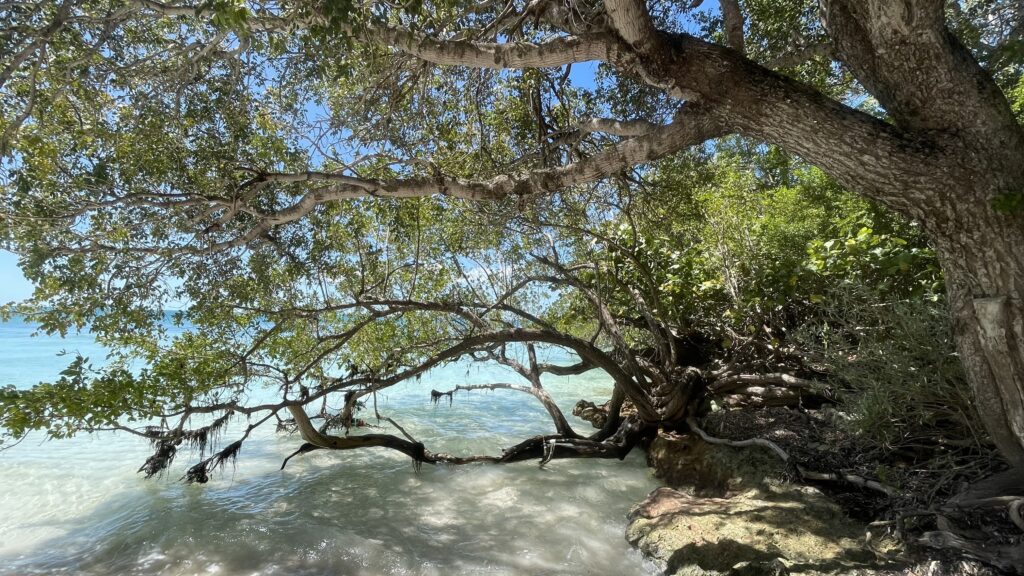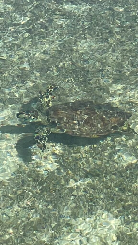 Mais revenons à ce tour dans la mangrove à bord de l’annexe . On se croirait sur une rivière amazonienne, les araignées, les serpents et les crocodiles en moins. Ici une raie, et là une véritable nurserie de paisibles et lymphatiques tortues, des grandes, des petites, des couleur marron foncé, ou couleur Rémy Martin ou Courvoisier (comme vous voudrez, je n’ai aucune action ni chez l’un ni chez l’autre) que nous dérangeons à peine. Devant nous un héron s’envole déployant son corps longiligne et squelettique, mais point de poissons dans le lit de la mangrove. Il s’éloigne royal et digne, chercher sa pitance vers d’autres cieux.