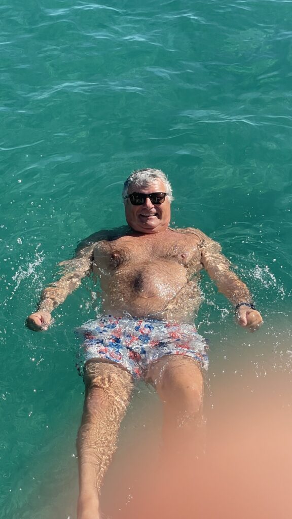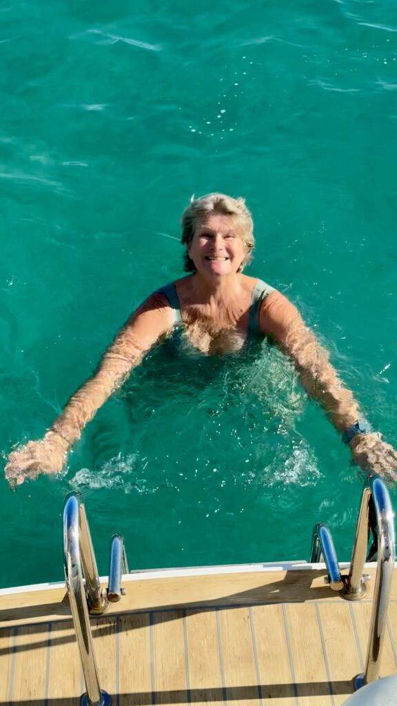 Nous rentrons au bateau et prenons notre tout premier bain de l’année….. à 23 degrés. Ca raffermit les chairs ! Mais une fois dedans, comme toujours : qu’est ce qu’elle est bonne !