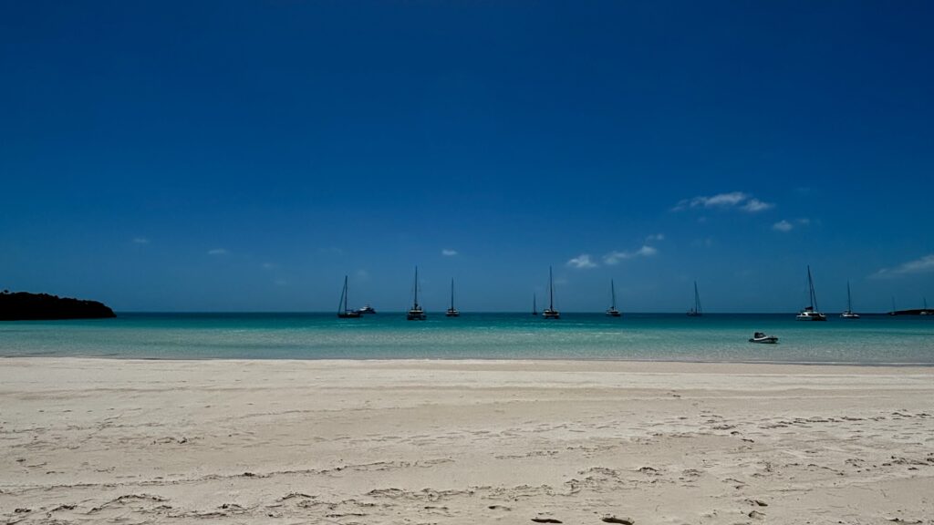 Nous bravons les éléments pour aller nous promener sur les 2 superbes plages aux dégradés de transparents et de turquoises, magnifique! Splendide ! Amazing ! Gorgeous ! Outstanding ! Breathtaking ! Awesome ! Stunning ! (les british ne manquent pas de superlatifs alors autant en profiter).