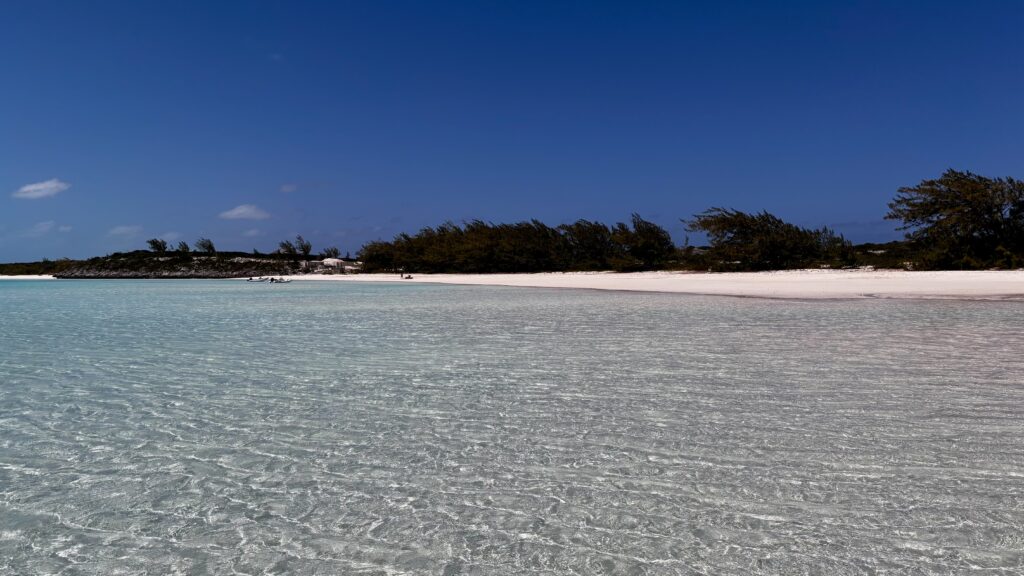 L’eau monte au mollet sur une centaine de mètres et scintille en carrés mouvants sur un fonds de sable blanc immaculé. Ici, un petit requin serpente dans une eau à peine profonde de 60 cm et là une tortue passe la tête hors des flots, quoi de neuf docteur ? pour mieux replonger. Sur la plage, des arbres aux branches chevelues rappellent des saules pleureurs, et en toile de fonds un petit maquis. Et toujours ce triptyque de Vert végétation – Blanc sable et Bleu mer. On ne change pas une équipe qui gagne.